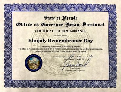 Qeyd edək ki, bu bəyanat, Nevada ştatının qubernatoru tərəfindən Xocalı faciəsinə dair imzalanmış ilk rəsmi sənəddir.