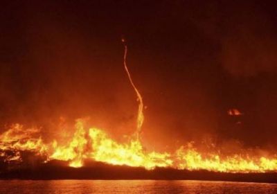 Yanğınsöndürənlərdən biri bu hadisəni lentə alaraq, sosial şəbəkədə paylaşıb. Bu təbiət hadisəsi alovun bir neçə istiqamətdən yayılması və qızmış havanın yuxarı qalxması nəticəsində yaranır. (oxu.az)
