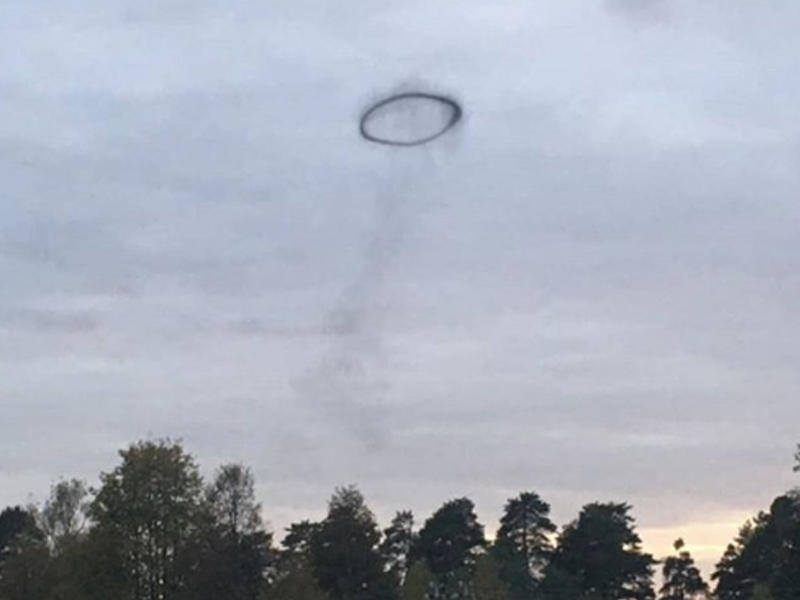 Şəkildə səmada hərəkətsiz dayanmış qara halqa görünür.