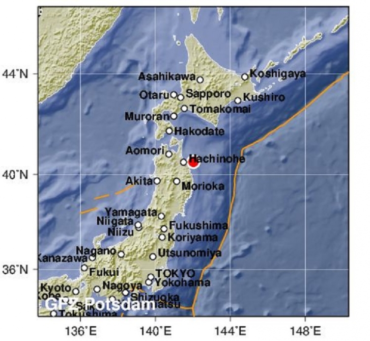 Oxumeni.az Yaponiya Meteorologiya Agentliyinə istinadla xəbər verir ki, zəlzələnin episentri Aomori sahillərindən şərqdə, ocağı 53 kilometr dərinlikdə yerləşib.