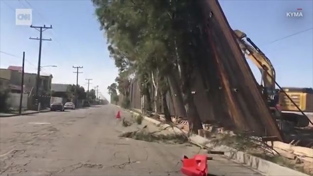 Güclü külək ABŞ-Meksika sərhədində inşası davam etdirilən divarı uçurub.
