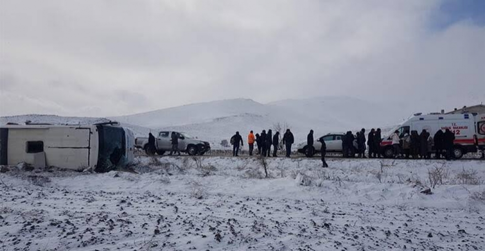 Məlumatda qeyd edilib ki, Adana şəhərinin Erciyes dağına gedən avtobusun sürücüsünün idarəetməni itirməsi səbəbindən nəqliyyat vasitəsi qəzaya uğrayıb