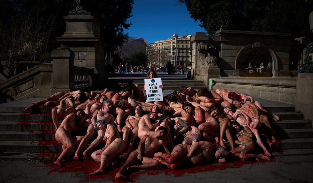 Barselonada heyvan hüquqları fəalları heyvan dərilərinin istifadəsinə qarşı etiraz aksiyası keçiriblər...