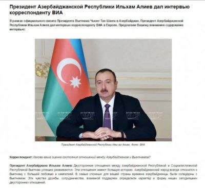Azərbaycan Respublikasının Prezidenti İlham Əliyev Vyetnam Respublikasının Prezidenti Çıonq Tan Şanqın ölkəmizə rəsmi səfəri çərçivəsində Vyetnam İnformasiya Agentliyinin Avropadakı müxbirinə müsahibə verib.