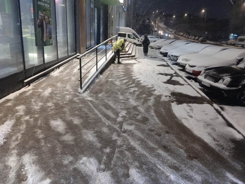 Gün ərzində kommunal xidmətlərin əməkdaşları metro stansiyaları, avtobus dayanacaqları, piyada səkiləri, küçə boyunca ictimai-iaşə, təhsil, səhiyyə və digər müəssisələrin qarşısının təmizlənməsi, buz bağlamış yerlərə texniki duz səpilməsi və digər təmizlik işlərini davam etdirirlər.