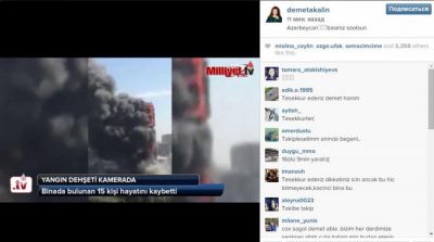 Türkiyəli müğənni Demet Akalın İnstaqram hesabında yanan binanın fotosunu paylaşaraq "Azərbaycan, başınız sağ olsun" yazıb.