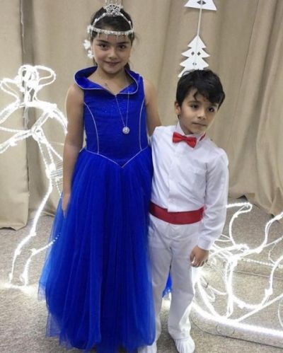 Əməkdar artist Röya Ayxanın oğlu Hüseyn xalq artisti Zülfiyyə Xanbabayevanın qızı Dənizlə birlikdə məktəbdə çıxış ediblər.