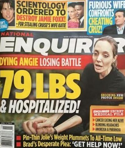 "National Enquirer" jurnalı aktrisa Ancelina Colinin ölüm ayağında olduğunu iddia edib.