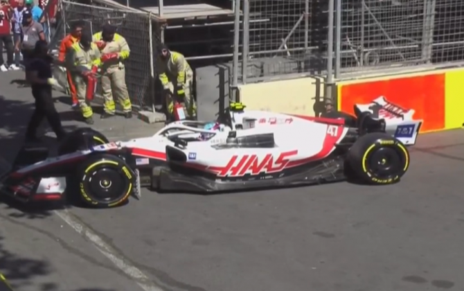 Oxuməni.az xəbər verir ki, qəzanı "Haas" komandasının pilotunu Mik Şumaxer edib.