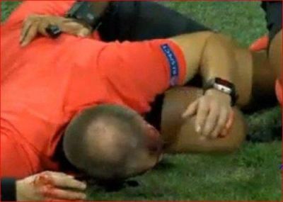 Avroliqa matçında insident: Hakimin başını yardılar - Video