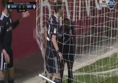 Topaz Premyer Liqanın 16-cı turunda hazırda davam edən "Sumqayıt" – "Qarabağ" oyununda kuryoz qol qeydə alınıb.